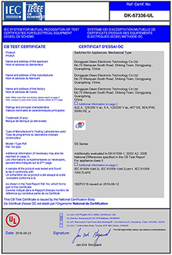 德傲微動開關CQC CB CE證書正式下發